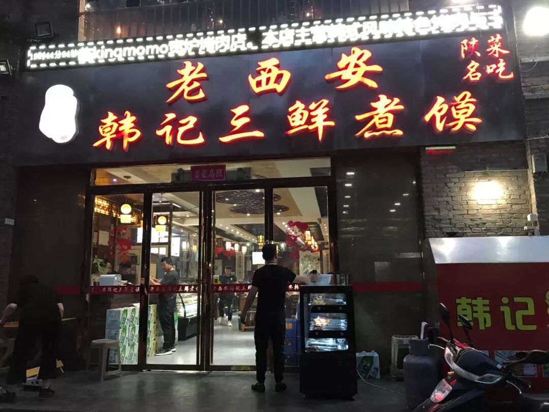 老西安韩记三鲜煮馍韩记三鲜煮馍绝对称得上的西安老字号了,一碗热乎乎的三鲜煮馍,汤鲜味浓馍筋肉香,是老陕从小吃到大的传统美食回忆。三鲜煮馍的“三鲜”指的是丸子、响皮、和五花肉片,再配以青菜、木耳等辅料,在自家亲自熬制的骨汤中沸煮,碗中三鲜颜色鲜亮,“丸子黄、肉片红、响皮奶色”,上桌香气四溢,看着朴实简单,实在却颇有内涵。