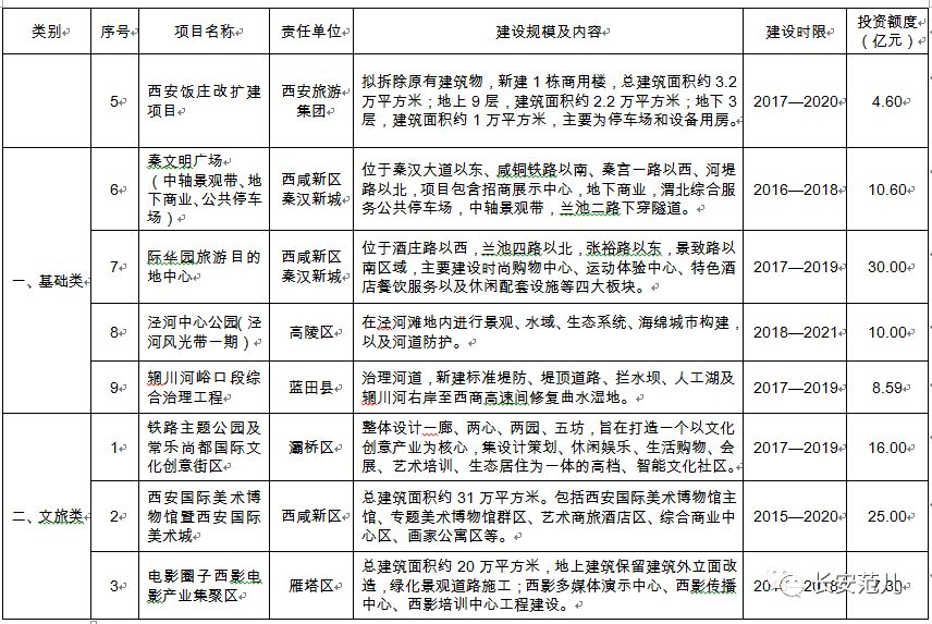 秦岭山地生态旅游建设项目、渼陂湖生态文化项目、渭河水景公园项目、石川河阎良段栎阳湖风景区项目、泾河城市中心公园项目等项目建设③ 都市文化休西安夜生活闲类旅游产品重点建设莲湖区顺城巷商业街区、临潼区凤凰池景区项目、。