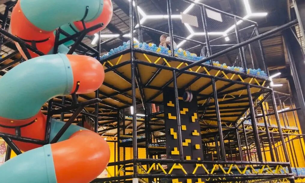 滑梯、“跳楼”平台、攀岩、粘粘强、篮球类...设施齐全、玩西安休闲娱乐耍内容丰富,颜值高色彩鲜艳,团体出动超级嗨~