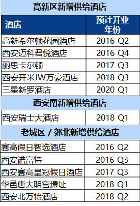 2011年西安世园会的举办催生了一系列高端国际酒店进入西安2013 - 2014年:高新区高速发展,带动西安休闲娱乐商旅及会议酒店需求增长从2013年开始,虽然市场仍然有数间国际品牌酒店开业,但市场需求的增长明显比供给增长的速度快。