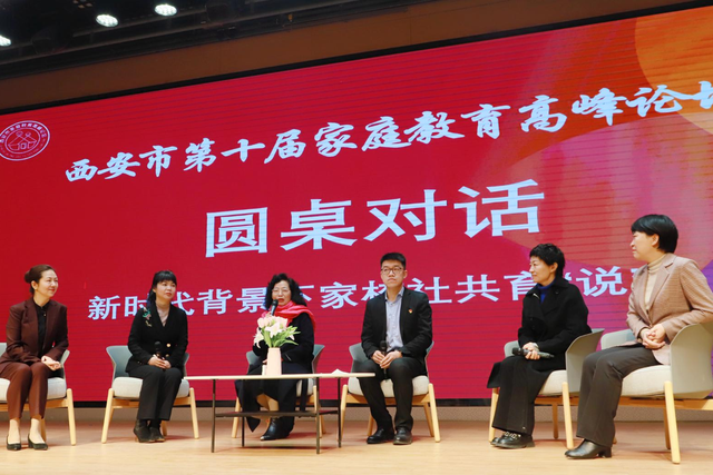 圆桌论坛上,4位校园长与西安市教育心理学会以及家长代表,围绕新时代家校社共育新特点、新做法及意义,展开深度探讨,共话未来。