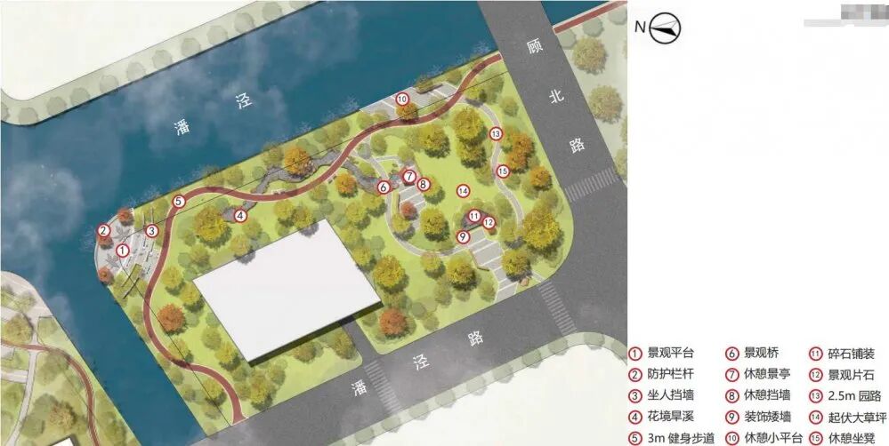 该项目预计2021年底建成开放。项目建成后,将辐射周边多个社区,为周边社区提供一个健康且具有活力的滨水环境,营造生态惠民场景,打造顾村老集镇宜人的居住环境。